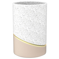 Стакан настольный TERRAZZO от производителя Fora изготовлен из экологичного, прочного и стойкого к влажности материала полирезин. Аксессуар используется для хранения зубных щеток, пасты и бритв. Благодаря стильному дизайну изделие отлично вписывается в интерьер современной ванной комнаты.