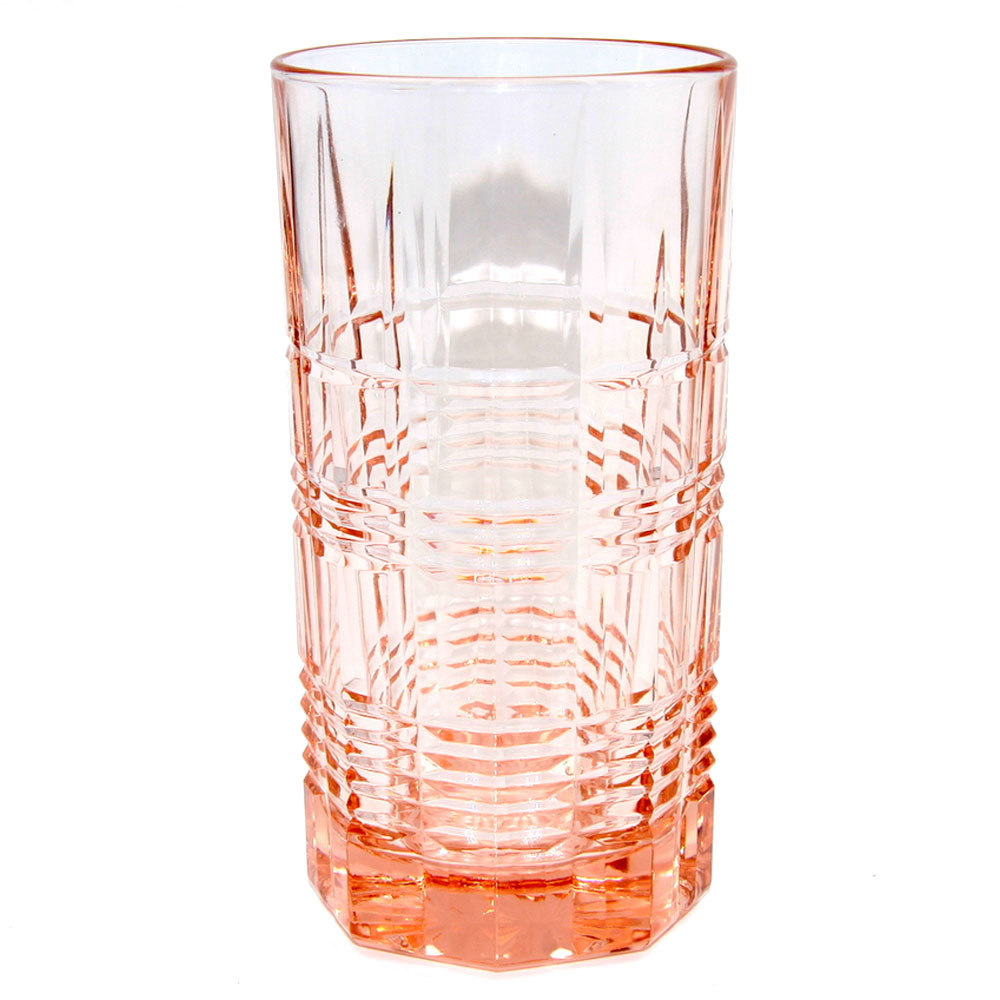 Высокий стакан из серии ''Даллас'' от бренда ''Luminarc'' изготовлен из натрий-кальций-силикатного стекла нежного розового цвета. Стакан выполнен в цилиндрической форме, на стенках с наружной стороны имеются гранения. Изделие универсально: подойдет как для безалкогольных напитков, так и для крепкого алкоголя и коктейлей.