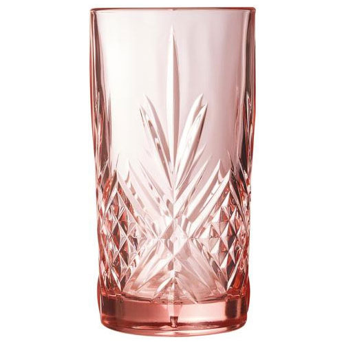Высокий стакан из серии ''Salzburg'' от бренда Luminarc изготовлен из натрий-кальций-силикатного стекла нежного розового цвета. Стакан выполнен в цилиндрической форме, на стенках с наружной стороны имеются гранения. Изделие универсально: подойдет как для безалкогольных напитков, так и для крепкого алкоголя и коктейлей.