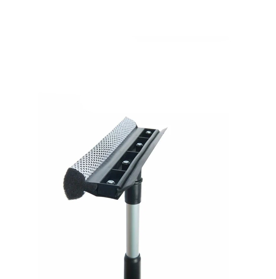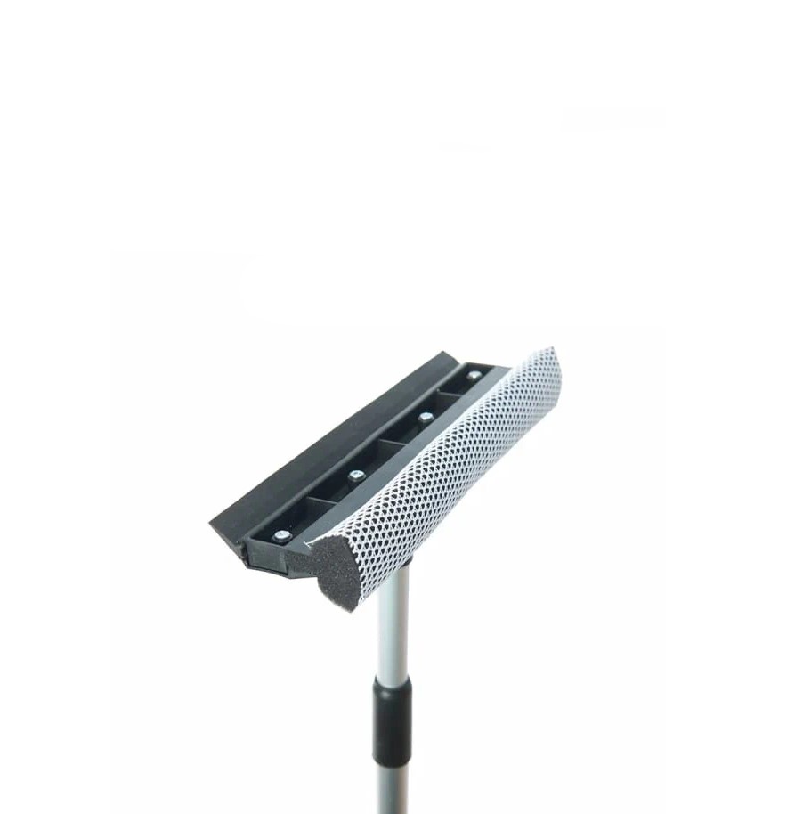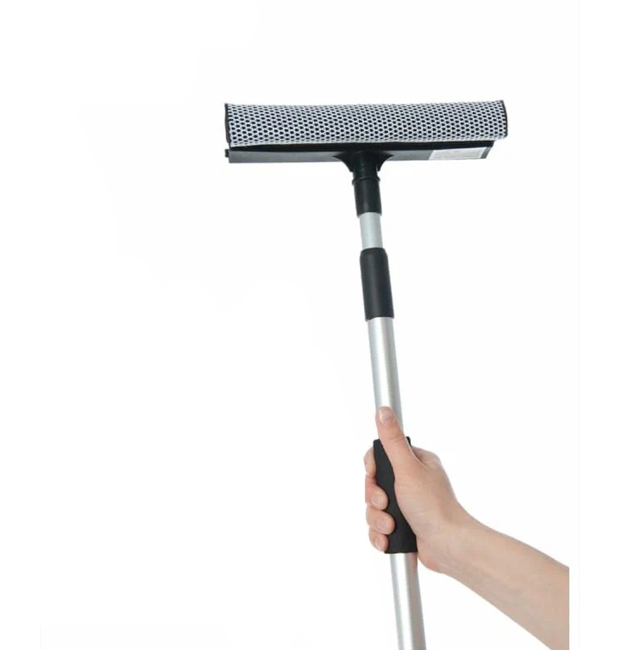 Телескопическая ручка, выполненная из металла, позволяет справиться с труднодоступными загрязнениями.