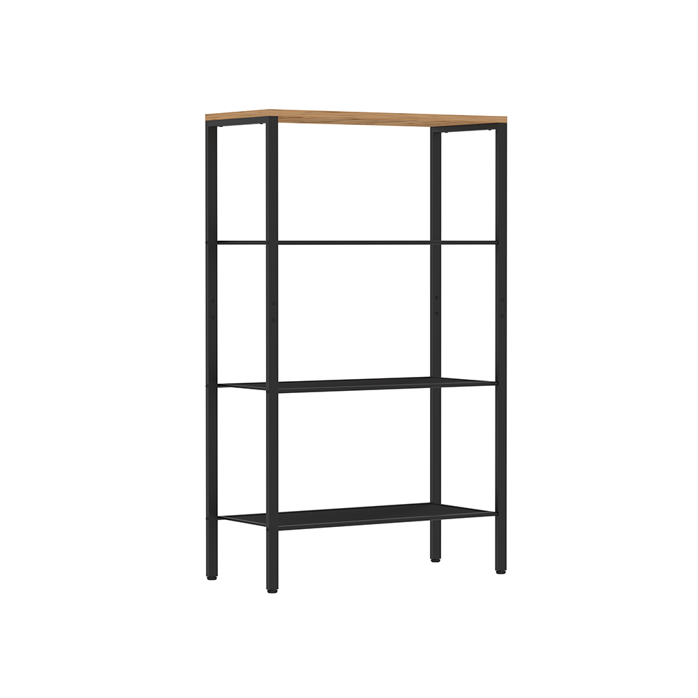 Открытый комнатный стеллаж на регулируемых ножках имеет надежные крепления.
