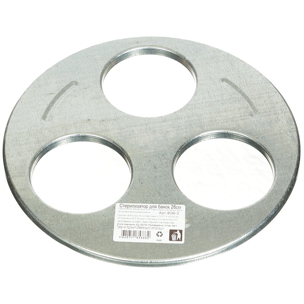 В период летних заготовок довольно часто приходится стерилизовать банки. Специальный стерилизатор поможет быстро и без усилий простерилизовать сразу три банки, без необходимости держать их в руках над горячим паром. Поместите круг на кастрюлю, в отверстие вставьте банки вверх дном. Обработка горячим паром — проверенный способ избавиться от бактерий и обеспечить консервам длительный срок хранения. Изготовлено из стали.