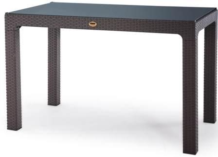 Стол, выполнен из высокопрочного пластика. Все столы серии RATTAN имеют комбинированную столешницу: центральная часть столешницы гладкая со структурой дерева; по краю столешницы декоративная полоса из ротангового плетения. В каждой ножке есть резьбовая опора, с их помощью столу можно придать устойчивое положение на любой поверхности.