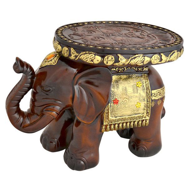 Выполняя функцию подставки под различные предметы, журнальый стол служит украшением интерьера. Овальная столешница поддерживается оригинальной сюжетной ножкой - статуэткой, представляющей собой фигуру слона.