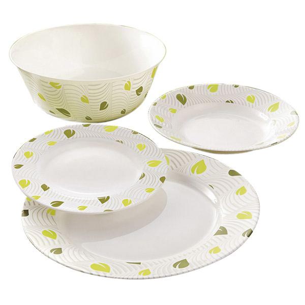 Столовый набор "Aмели" изготовлен из ударопрочного стекла и украшен рисунком.