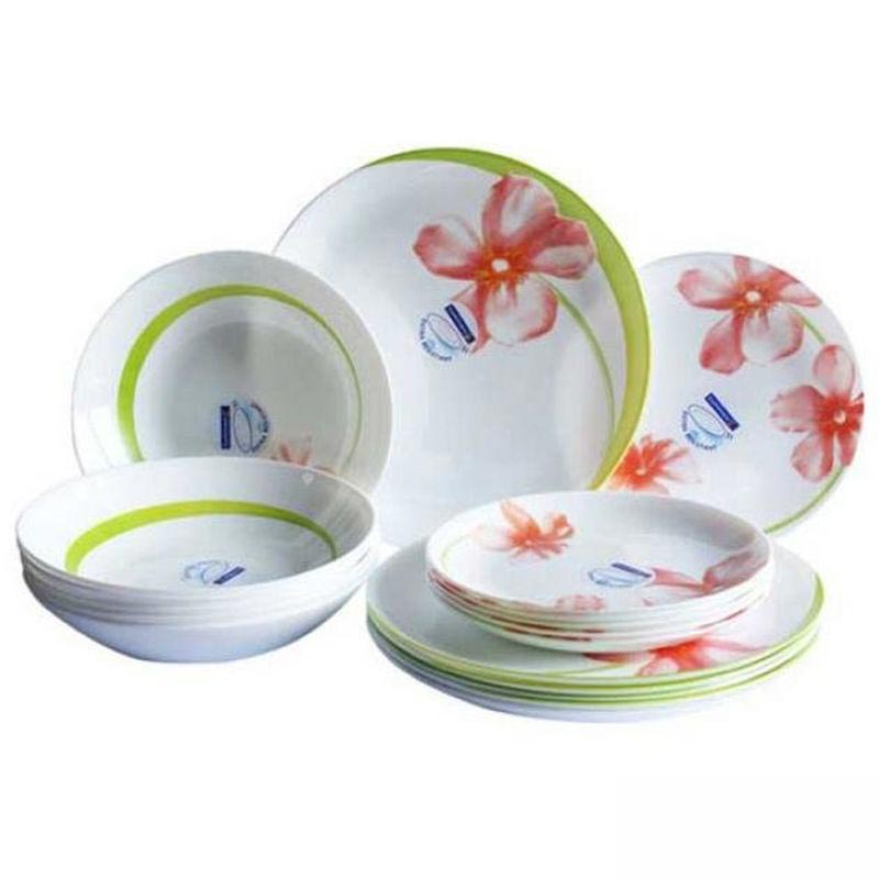 Столовый набор "Sweet Impression" изготовлен из ударопрочного стекла белого цвета с цветочным рисунком.