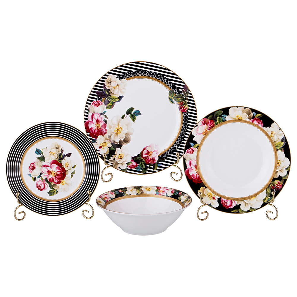 Посуда выполнена из высококачественного фарфора и декорирована оригинальным цветочным рисунком.