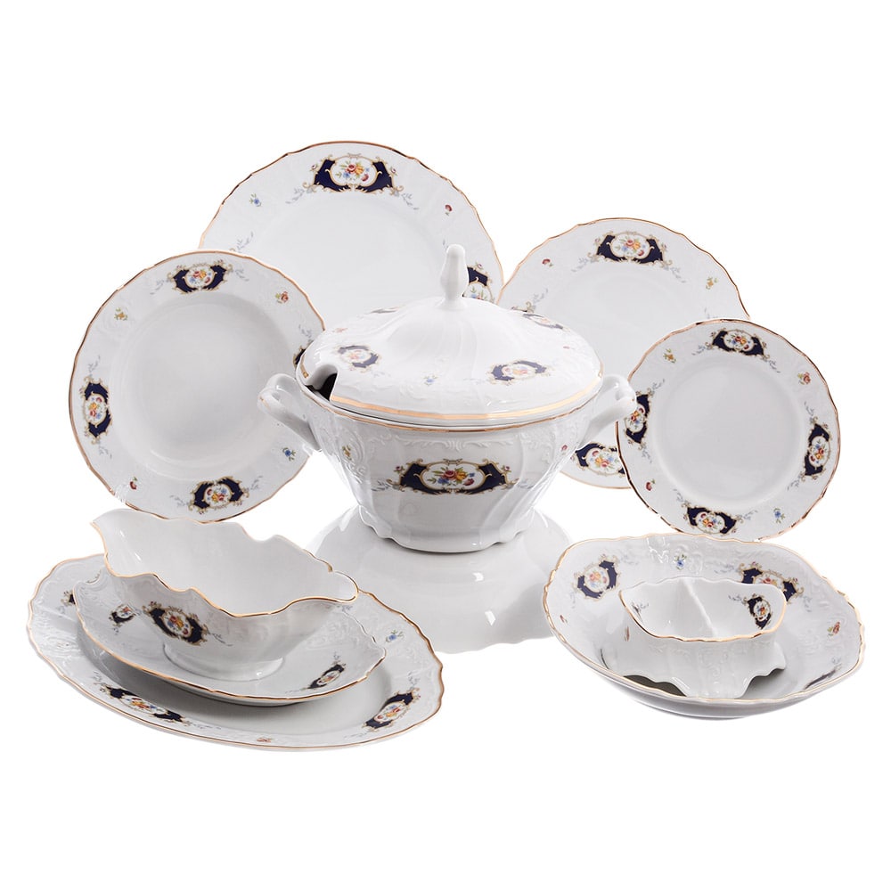 Набор столовой посуды Bernadotte Синий глаз с грамотным выдержанным рисунком по борту и растительным декором без перегруза станет настоящим украшением праздничного стола.