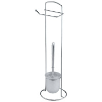 Стойка напольная с держателем для туалетной бумаги и ершиком ELINE. Изготовлена из высококачественной хромированной стали, устойчивой к проявлению элементов коррозии. Изделие состоит из держателя туалетной бумаги, ершика с ручкой, белой щеткой с жестким густым ворсом и подставки.