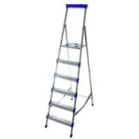 Стремянка представляет собой надежную металлическую конструкцию, имеет страховочную ленту, есть высокая эргономичная дуга безопасности со встроенным лотком для инвентаря и отделением для инструментов.