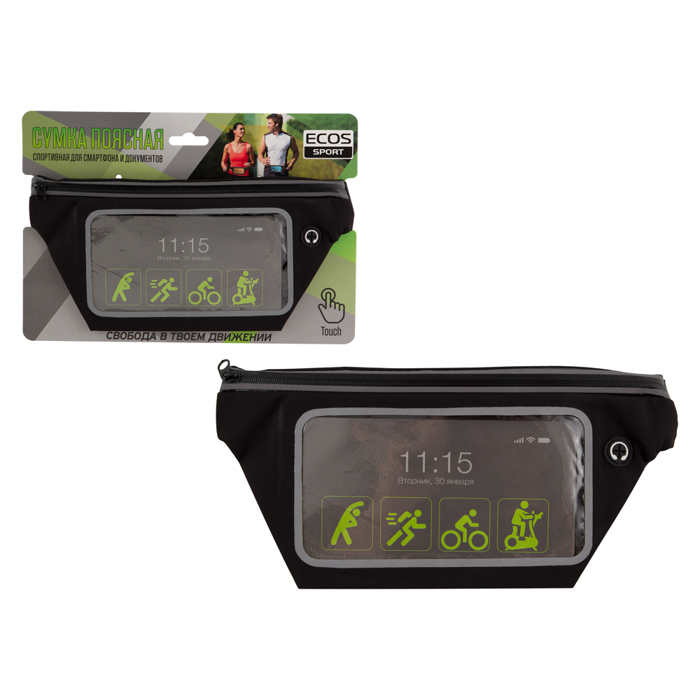 Поясная спортивная сумка Ecos для смартфона и документов SC-11 006411 подходит для хранения различных моделей сенсорных телефонов: iPhone, Samsung, Huawei, Xiaomi размером до 6.5 дюймов (включая флагманские модели: Samsung Galaxy A51, Samsung Galaxy M21, Samsung Galaxy S10+, iPhone XR, iPhone XS Max, iPhone 11, Huawei Mate 20 Pro, Xiaomi Redmi Note 8 Pro, Xiaomi Redmi 9, Xiaomi Mi Note 10 Lite). Обладает водозащитными свойствами.