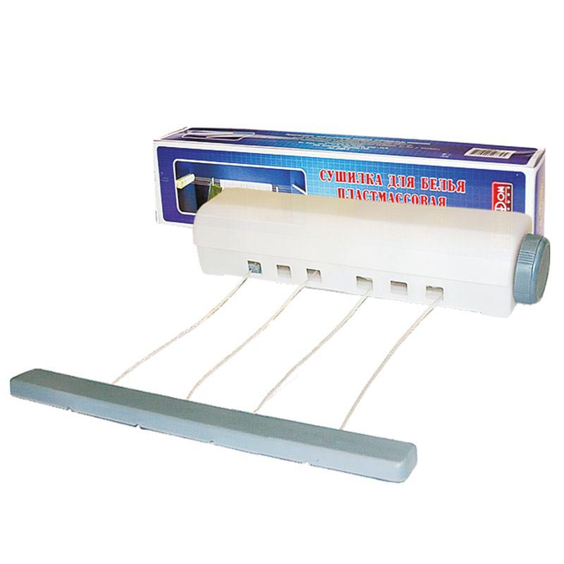 Сушилка крепится к стене, имеет 4 горизонтально расположенных веревки.