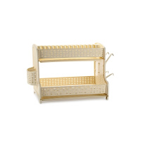 Сушилка для вымытой посуды изготовлена из пищевого пластика цвета слоновой кости. Имеет секции для размещения тарелок и столовых приборов, а также крючки для кружек, стаканов и крышек от кастрюль и сковородок. Съемный поддон соберет остатки воды, которая стекает с посуды. Текстура с имитацией натурального плетения "Ротанг".