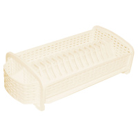 Сушилка из пищевого пластика для сушки вымытой посуды. Имеет секции для размещения тарелок и столовых приборов. Съемный поддон соберет остатки воды, которая стекает с посуды. Текстура с имитацией натурального плетения "Ротанг".