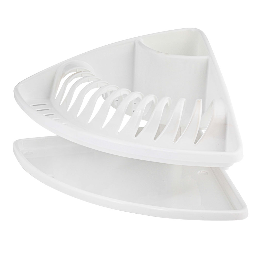 Сушилка угловая настольная для посуды удобна там, где нет много места. Сушилка для столовых приборов поможет легко организовать различные тарелки по порядку. Конструкция с отверстиями на дне удобна для слива воды, сушилку можно установить на столе, возле раковины, а также в шкафу. Стильный дизайн и нейтральный цвет сушилки подойдет для большинства расцветок кухонь. Сушилку можно легко перемещать или убирать в удобное на кухне место. Размер сушилки: 35,3x35,3x13 см
