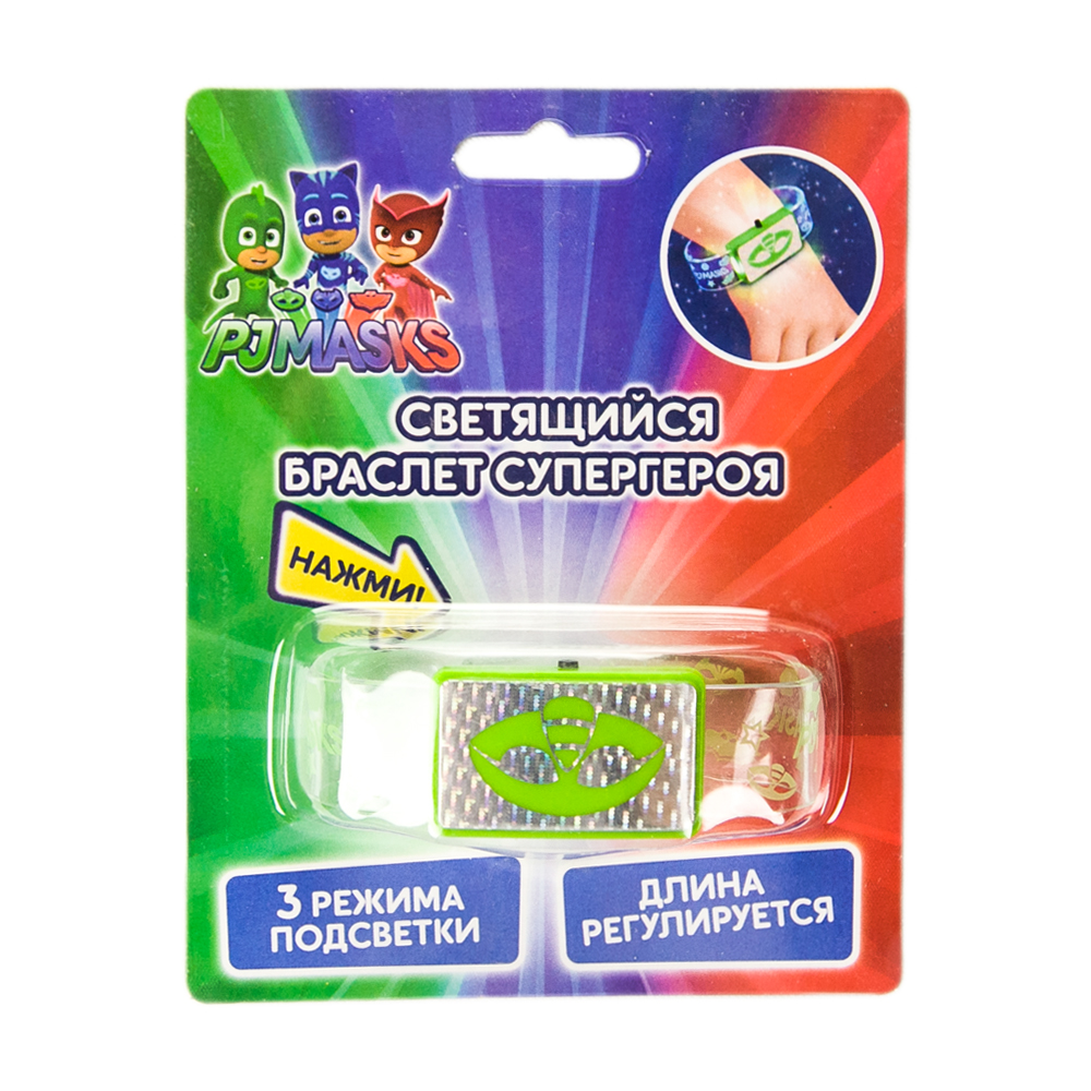 Предложите Вашему ребенку ненадолго стать отважным персонажем мультфильма «Герои в масках» Гекко, ведь для этого достаточно лишь надеть на руку это браслет с характерной символикой.