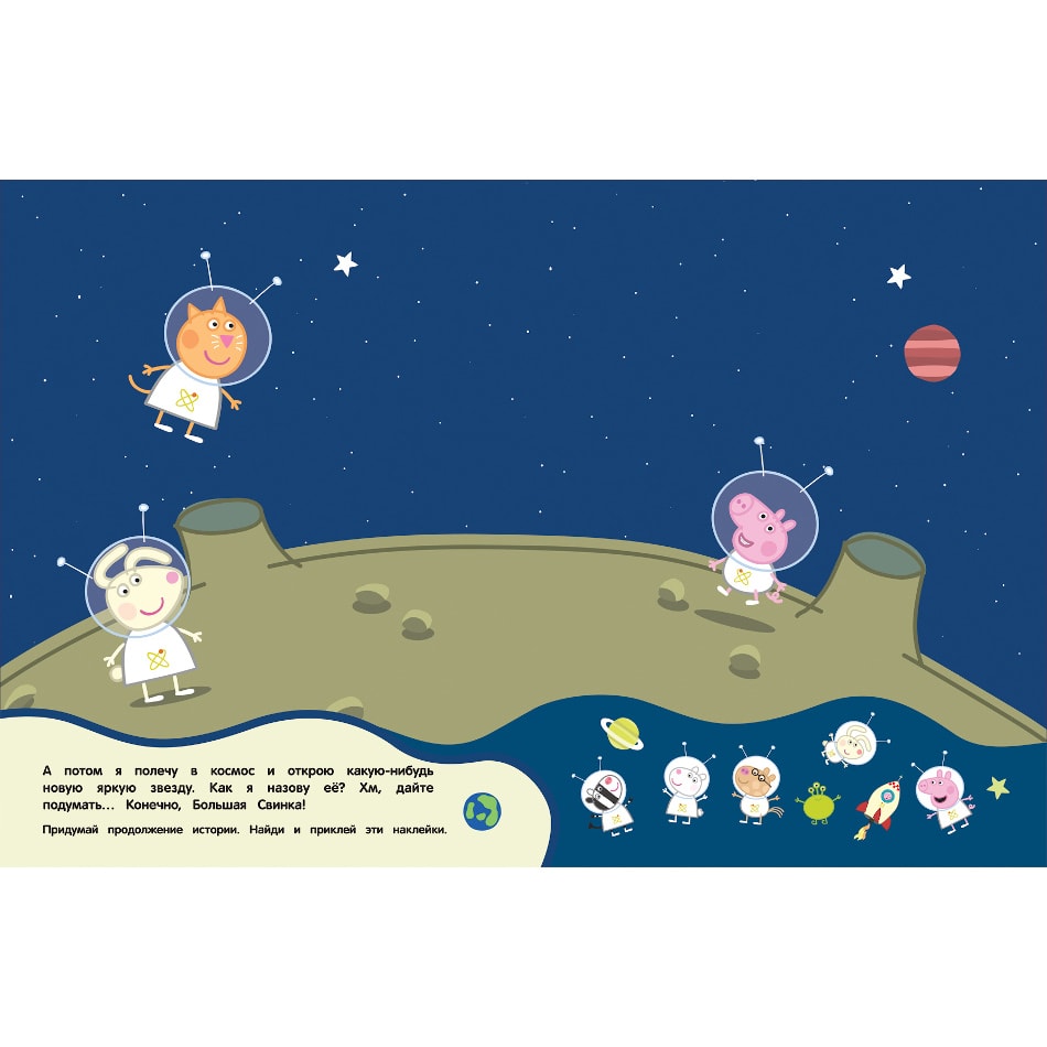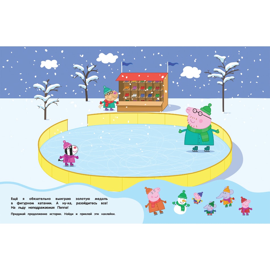 Красочная книга Свинка Пеппа с многоразовыми наклейками, которые ты можешь переклеивать сколько угодно раз, каждый раз придумывая новые истории! Играем и развиваем воображение вместе с очаровательной свинкой Пеппой!