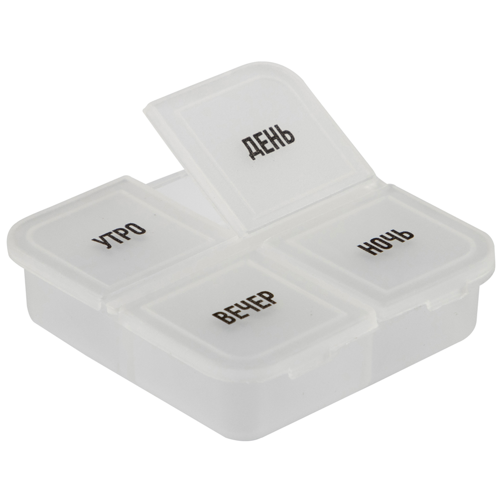 Таблетница на день Ecos 4 секции, день/утро/вечер/ночь предназначена для упорядоченного и компактного хранения лекарственных средств и витаминов.