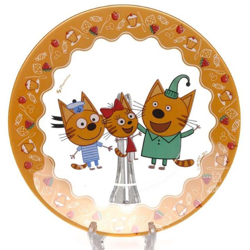 Тарелка с изображением героев развлекательного обучающего анимационного сериала "Три кота" подойдет абсолютно для любых блюд: горячего или десерта.