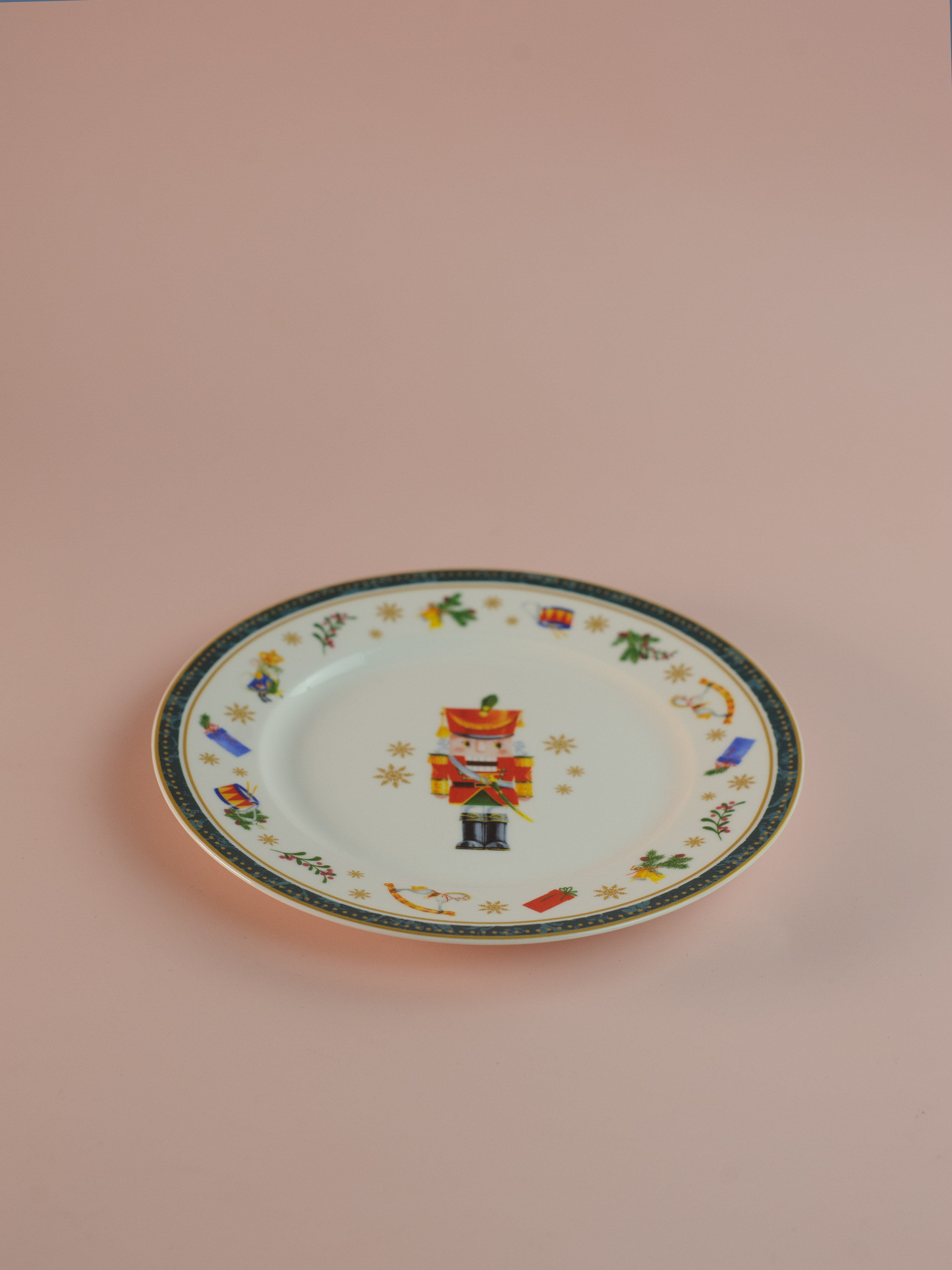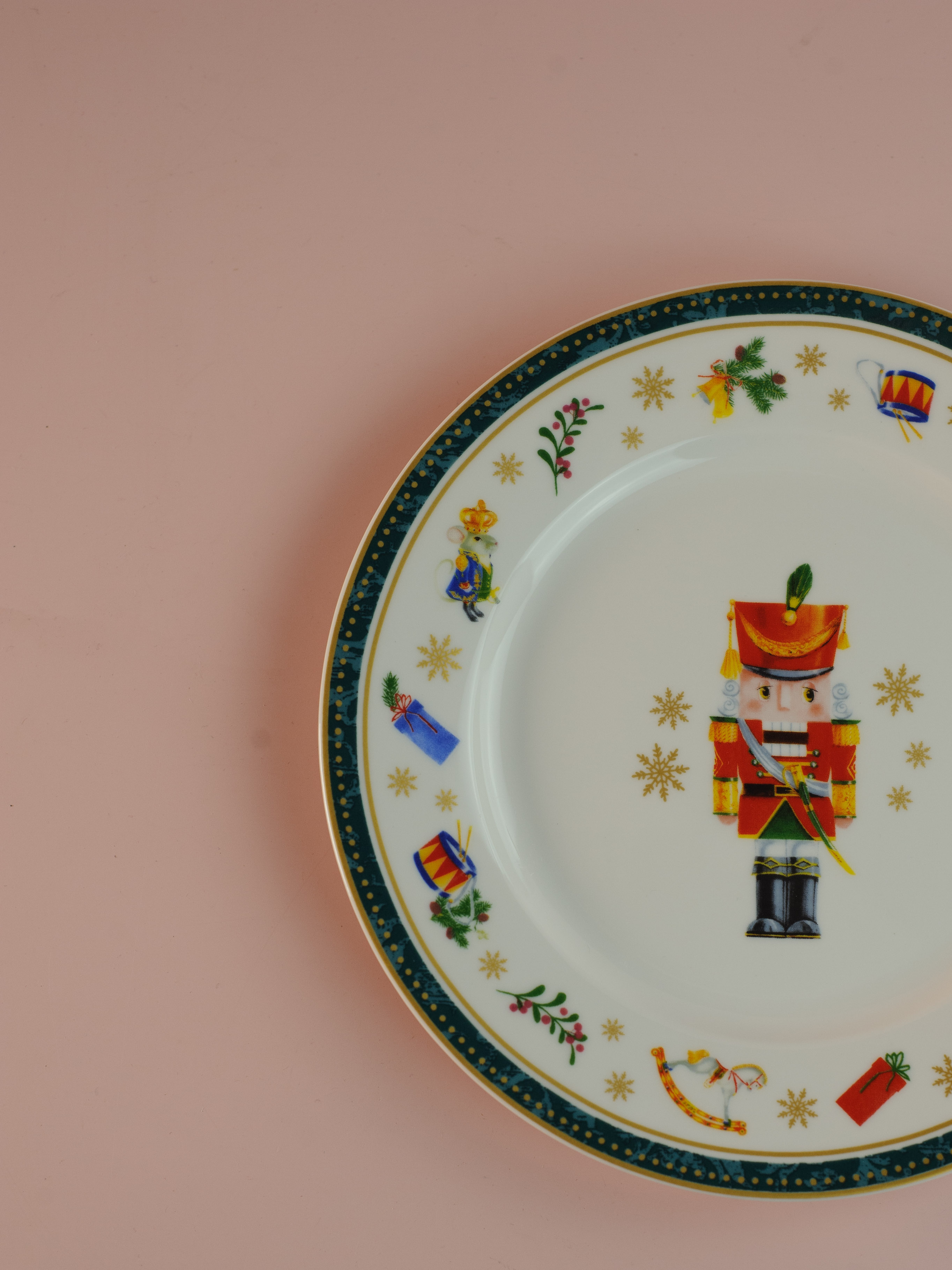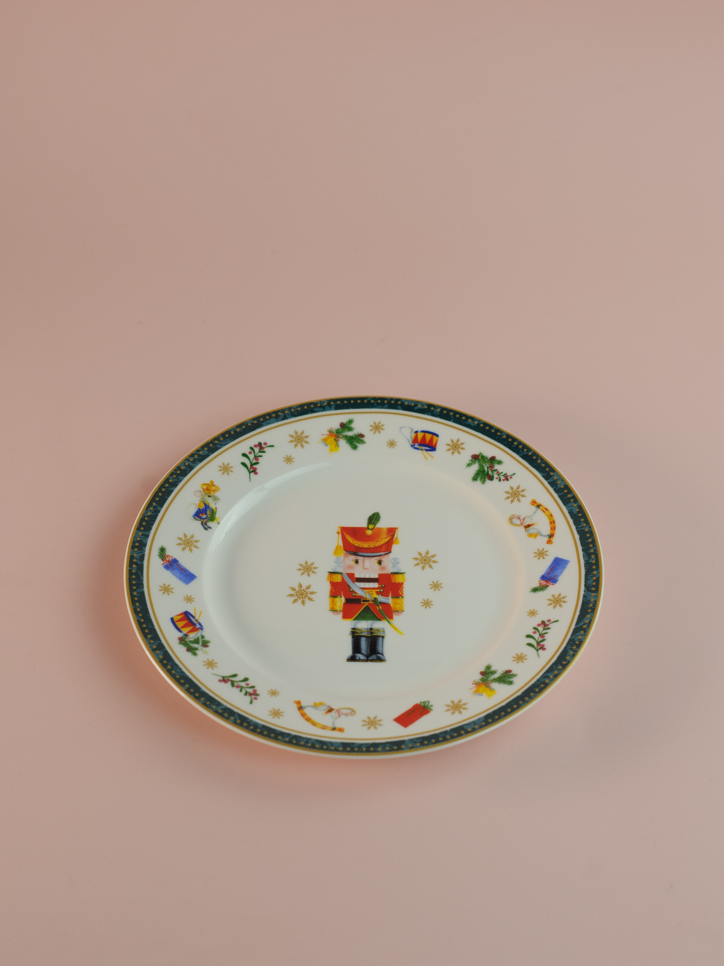 Десертная тарелка выполнена из высококачественного фарфора и декорирована по краю новогодним орнаментом. На дне изделия имеется изображение в виде знаменитого Щелкунчика. Такая коллекция посуды создаст неповторимую новогоднюю атмосферу.