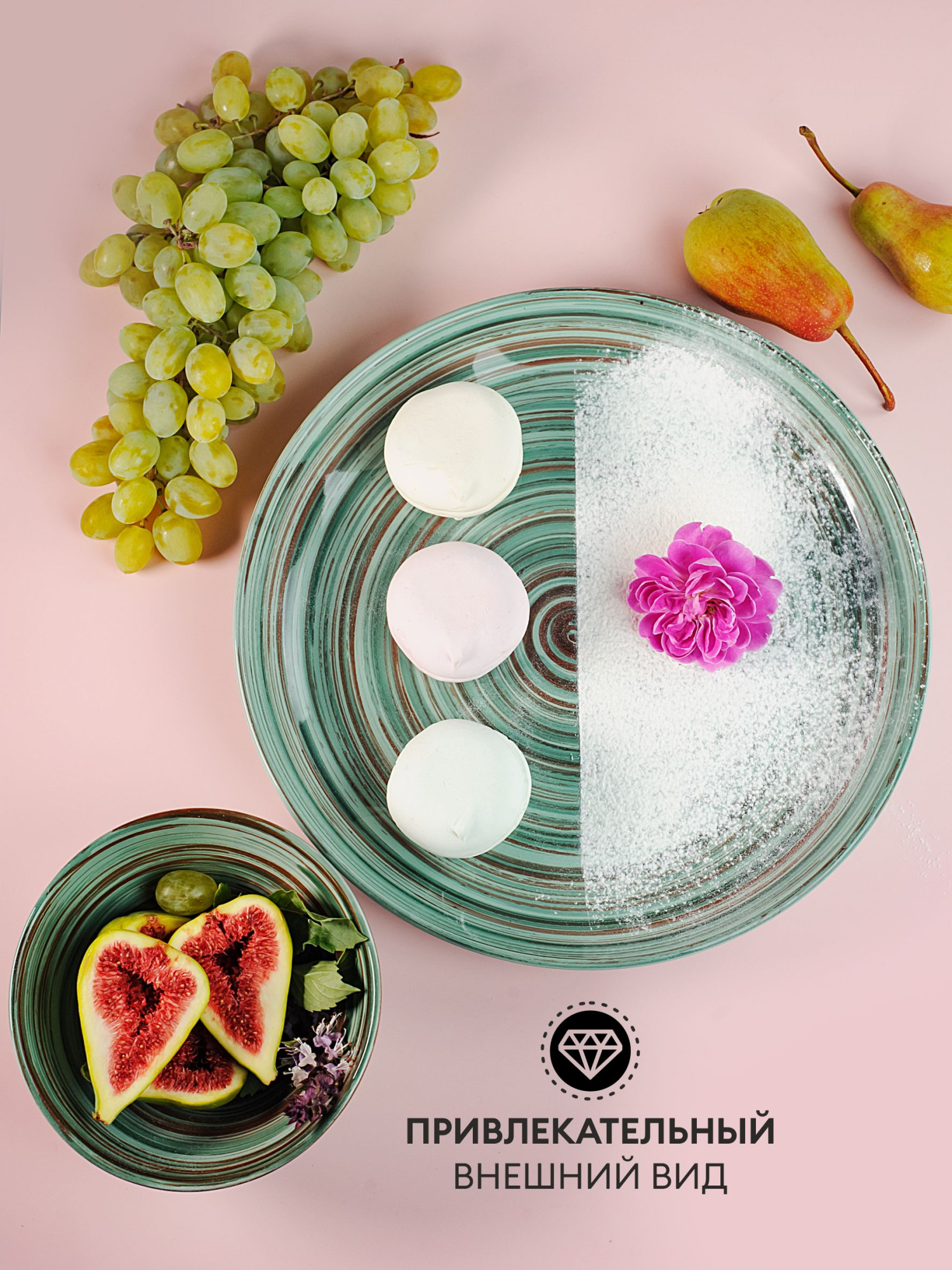 Отличная тарелка большого диаметра с небольшими бортиками. Подойдет как для подачи блюд на праздничном столе, так и для запекания в духовке и микроволновке. Пригодна для мытья в посудомоечной машине.