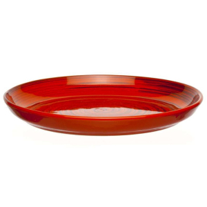 Жаропрочная посуда из красной глины из коллекции "Оранжевая полоска". Отличная тарелка большого диаметра с небольшими бортиками. Подойдет как для подачи блюд на праздничном столе, так и для запекания в духовке и микроволновке. Пригодна для мытья в посудомоечной машине.