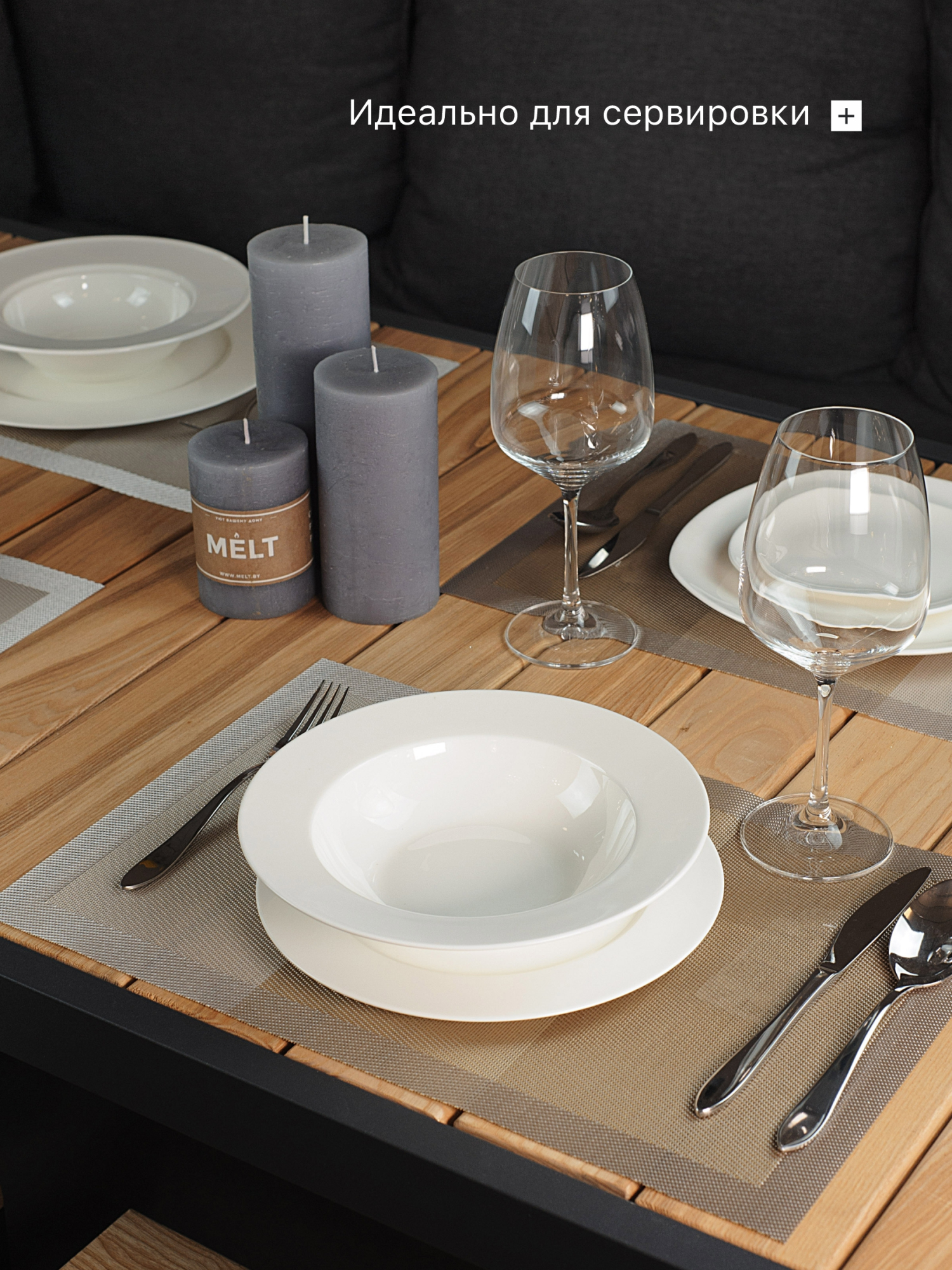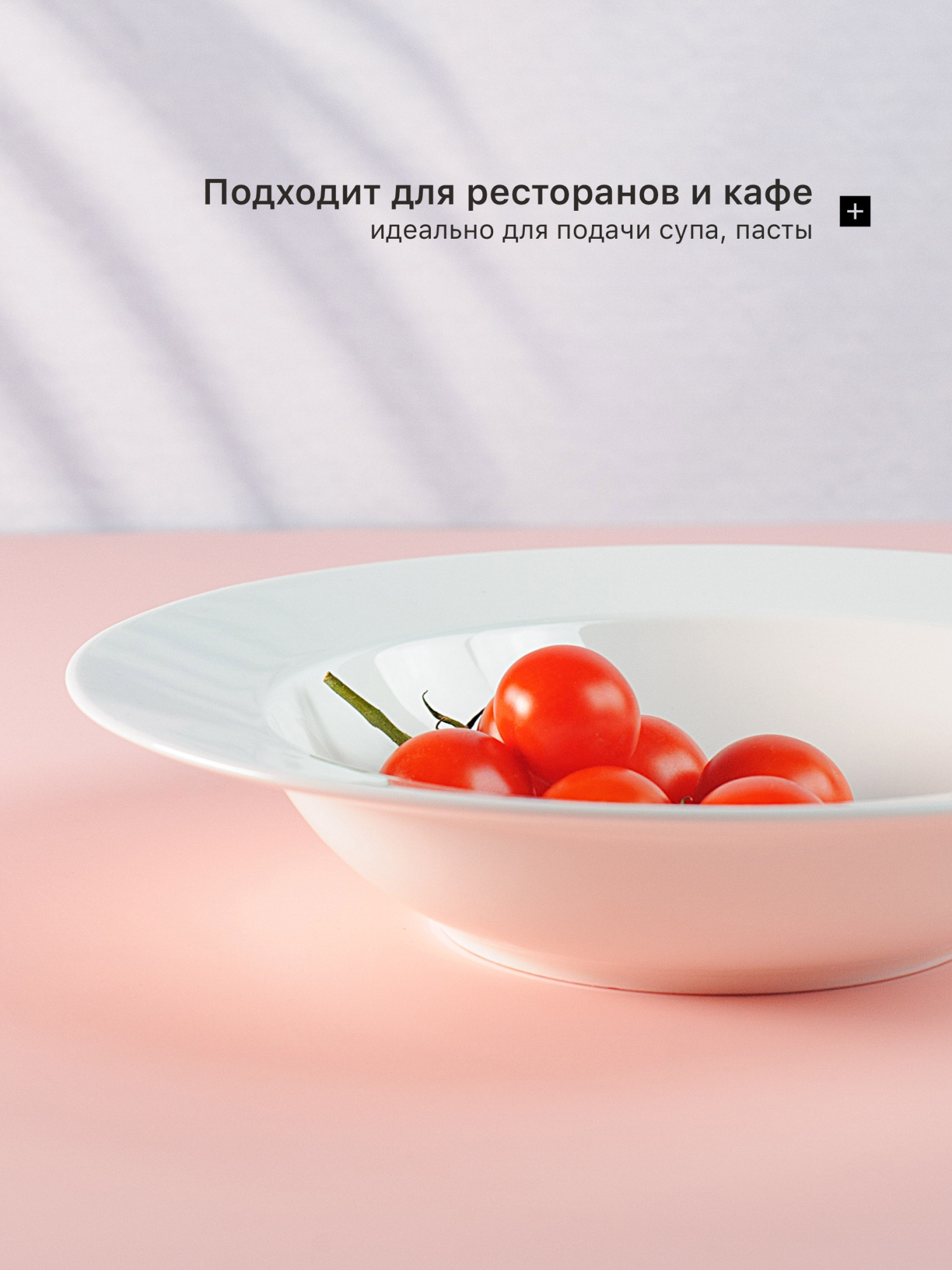 Большая глубокая тарелка с полями - отличный вариант для подачи блюд на несколько порций, например, салат, пасты, пельмени. Она оптимальным образом заменит классический салатник и позволит создать более утонченный стиль за Вашим столом.