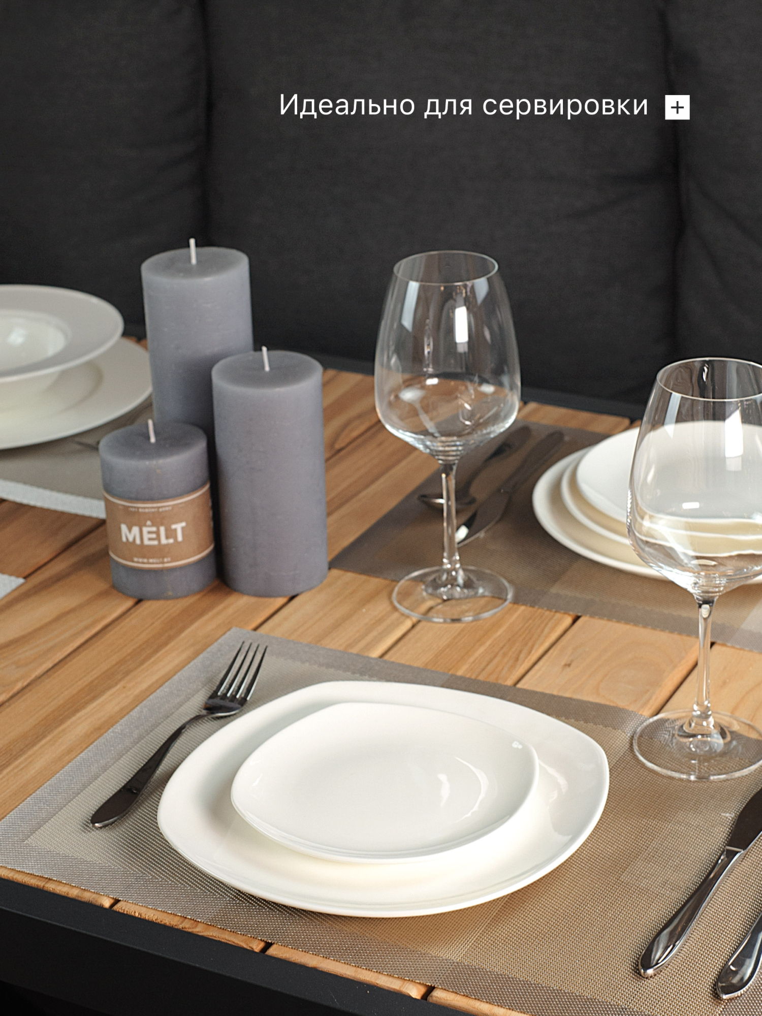Тарелка "Wilmax", изготовленная из высококачественного фарфора, имеет квадратную форму.