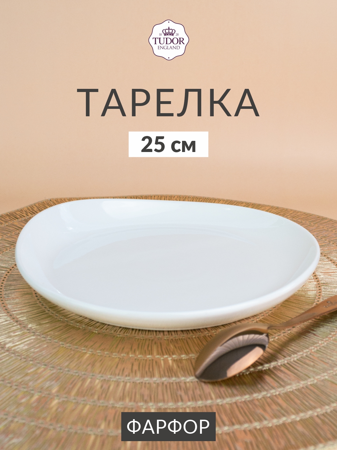 Обеденная тарелка от бренда TUDOR ENGLAND изготовлена из высококачественного фарфора, покрытого двойным слоем глазуровки. Отличается особой износостойкостью и устойчивостью к ударам и сколам. Тарелка изготовлена из высококачественного фарфора, покрытого двойным слоем глазуровки. Именно поэтому она отличается особой износостойкостью и устойчивостью к ударам и сколам. Белизна и прочность материала достигаются благодаря добавлению в состав фарфора магния и алюминия, а гладкость и роскошный блеск - результат особой рецептуры глазури. При легком ударе деревянной палочкой посуда издает высокий чистый звук, характерный для фарфора высшего качества. Изделие подойдет для подачи вторых блюд, десертов, а также ее можно использовать, как подстановочную тарелку. Благодаря лёгкости и практичности отлично подойдет как для сервировки праздничного стола, так и для повседневного использования. Белый цвет с оттенком слоновой кости будет эффектно смотреться на Вашем столе. Отличается особой утонченностью и изяществом. Фарфоровую тарелку можно использовать в микроволновой печи, мыть в посудомоечной машине. Поверхность не впитывает запахи и легко очищается. Посуда создана для вас с любовью. Прекрасный дизайн, который подойдет для любой кухни, ресторанов и кафе.