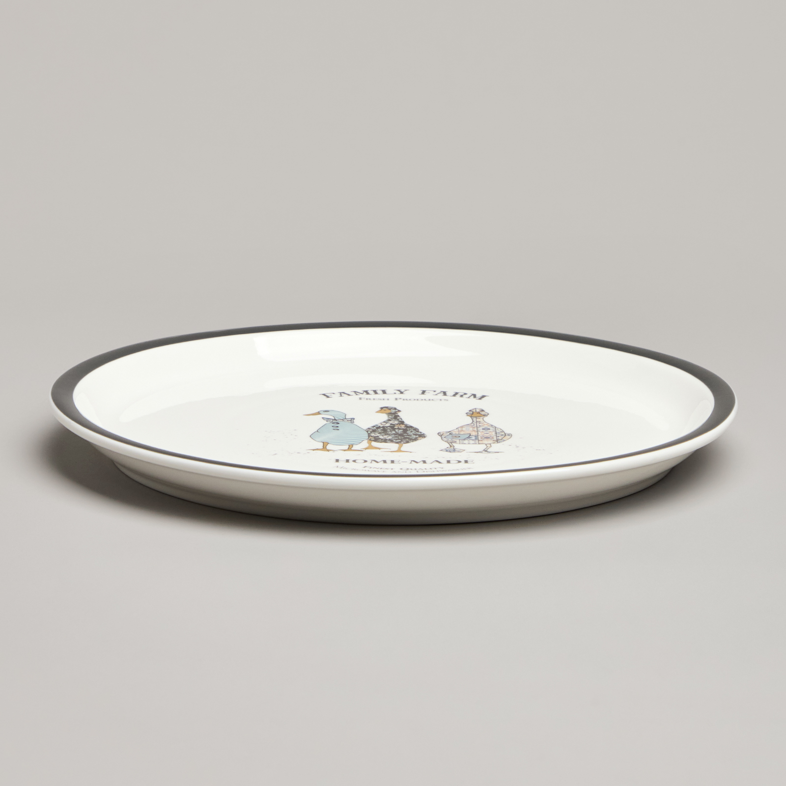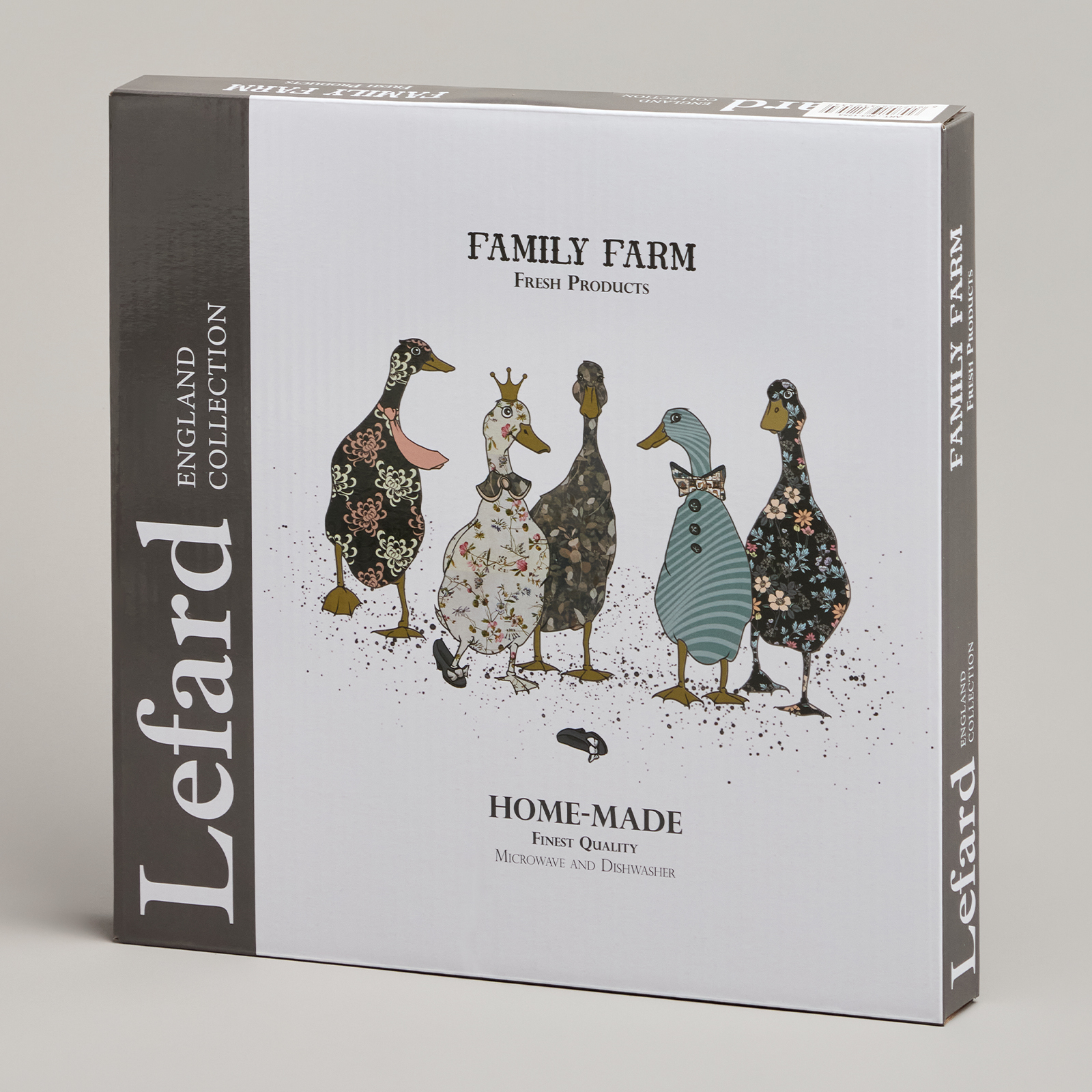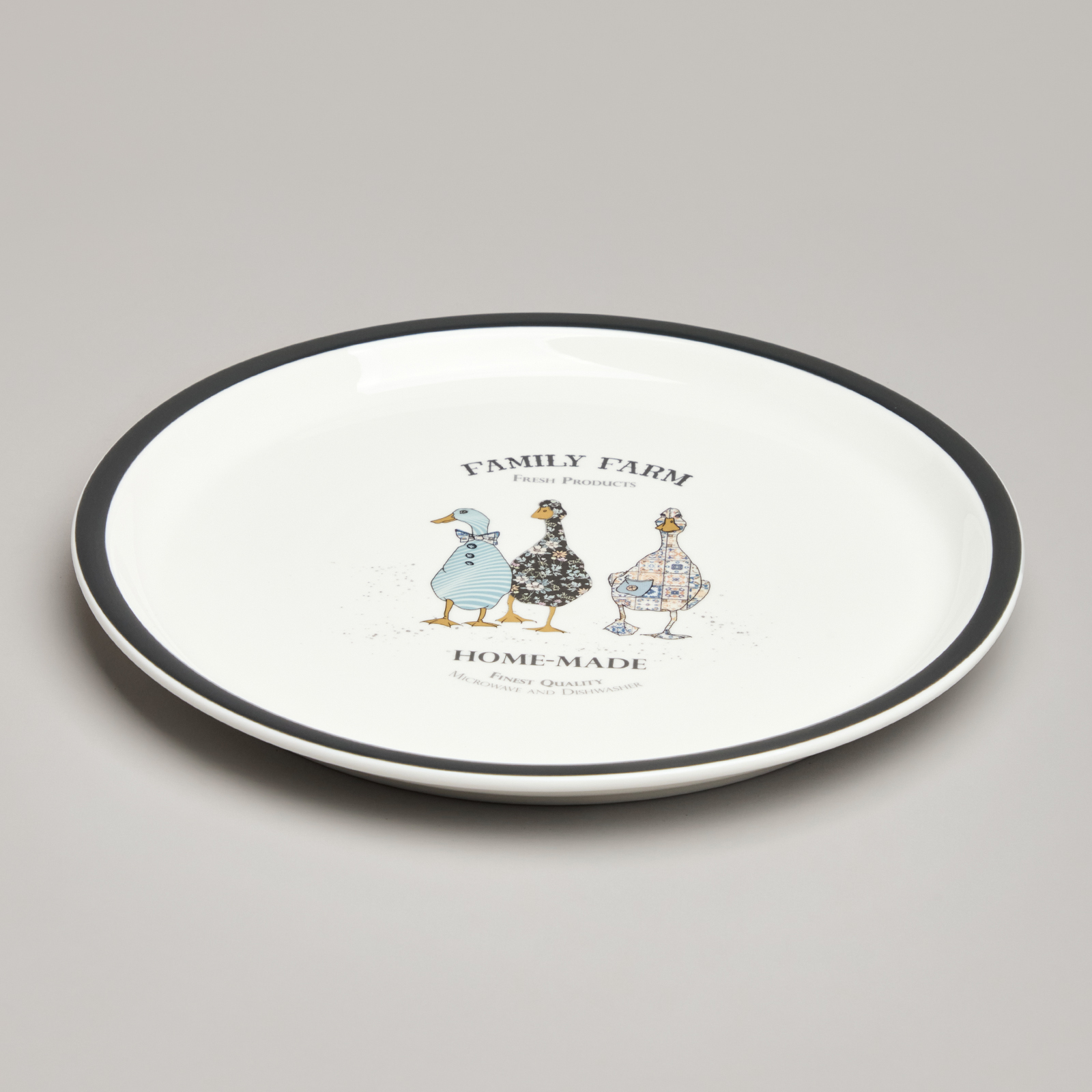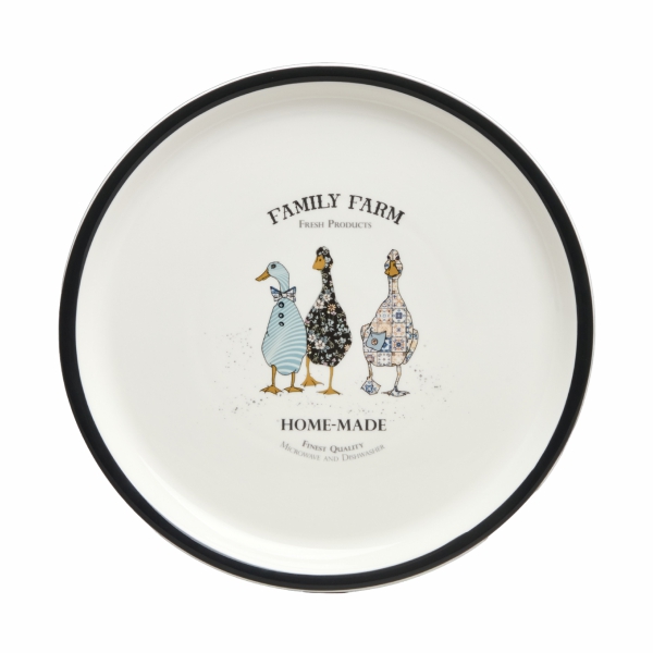 Тарелка украшена стильным рисунком с изображением гусей, что добавляет особый шарм и символизирует семейные ценности. Коллекция Family Farm предлагает разнообразие предметов, позволяющих создать уникальный интерьер кухни и гостеприимную атмосферу за столом.