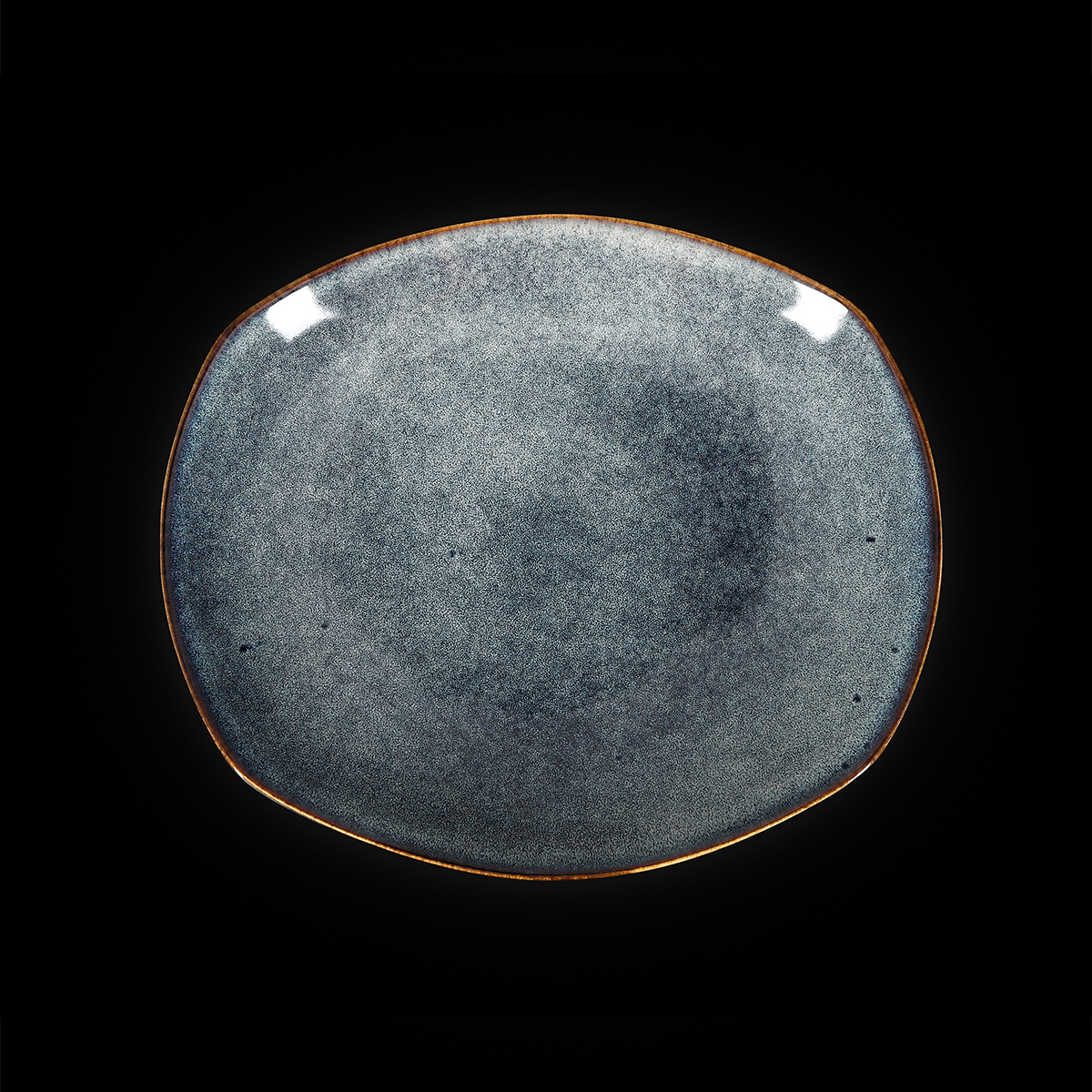 Тарелка овальная Corone Celeste выполнена в серо-синем «джинсовом» цвете с коричневой окантовкой.