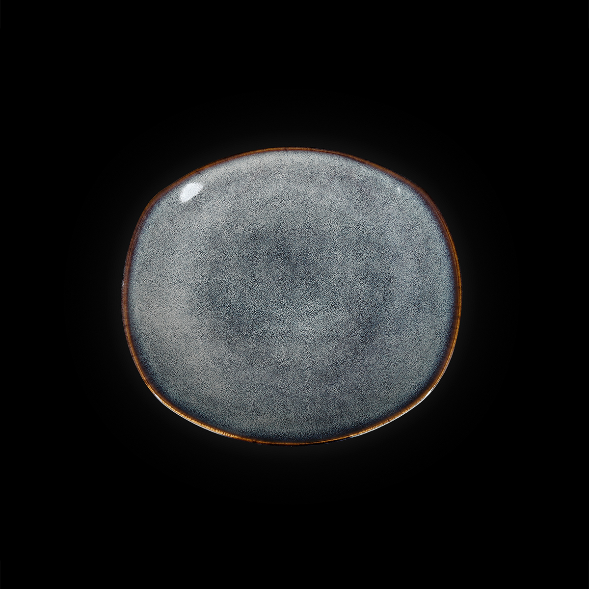Тарелка овальная Corone Celeste выполнена в серо-синем «джинсовом» цвете с коричневой окантовкой.