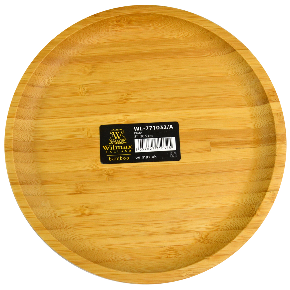 Тарелка круглая Wilmax изготовлена из натурального бамбука - прекрасного, долговечного, экологически чистого материала. Отличается красивыми, хорошо сбалансированными текстурами, водонепроницаемостью и термостойкостью. Бамбуковая тарелка идеально подойдет для подачи десертов и закусок, а также основных блюд при использовании подложки из пергаментной бумаги. Диаметр 20,5 см. В сочетании с фарфоровой посудой Wilmax бамбуковое блюдо позволит создать особенную атмосферу легкости за Вашим столом.