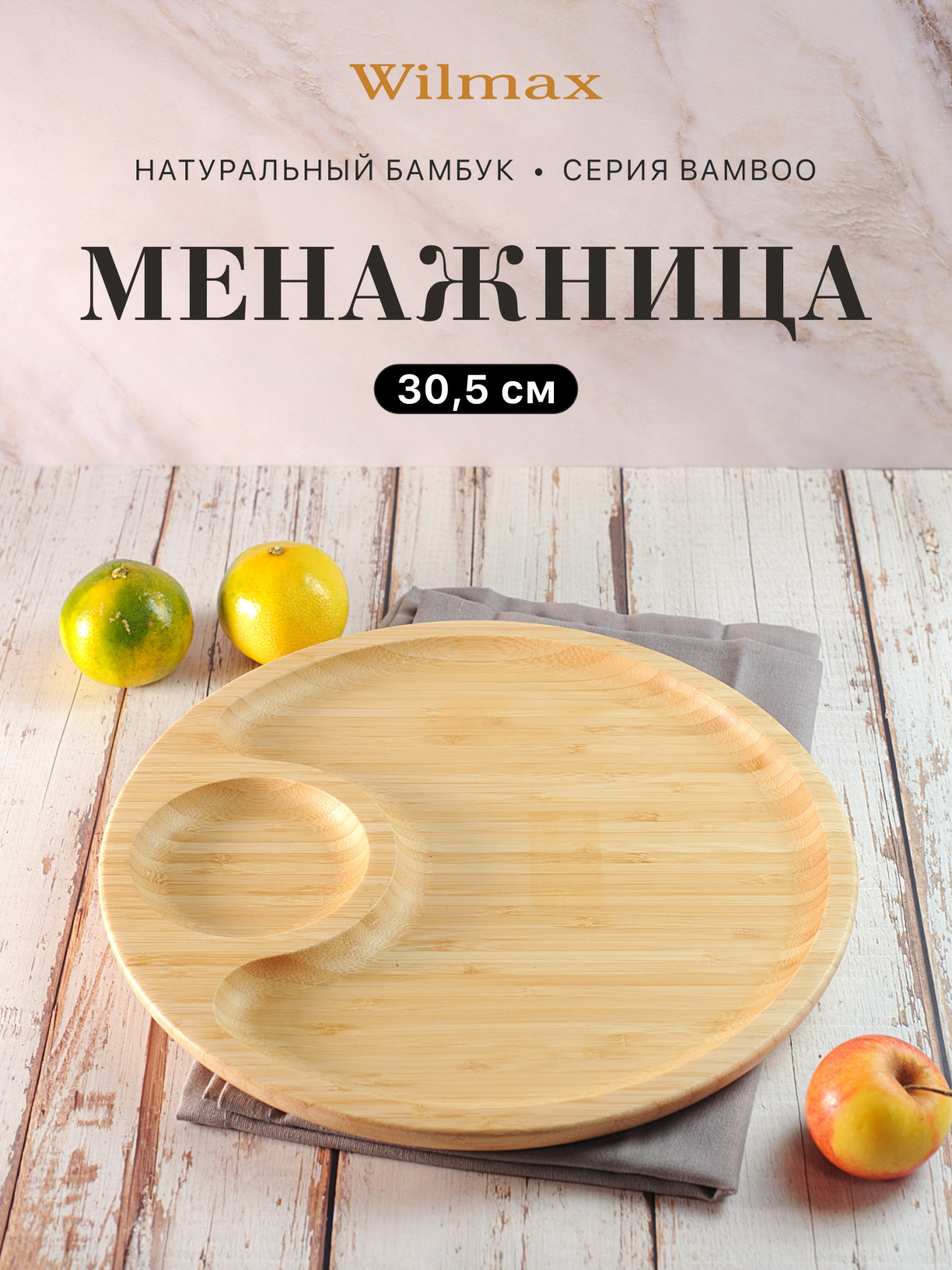 В сочетании с фарфоровой посудой WILMAX бамбуковое блюдо позволит создать особенную атмосферу легкости за Вашим столом.