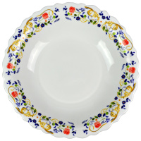 Максимально практичная и удобная в обращении тарелка Royal Garden Wildflower диаметром 22,5 см. Предназначена для подачи горячих и холодных жидких блюд, супов и бульонов. Изделие выполнено из опалового стекла в белом цвете по краю декорирована рисунком полевых цветов. Гигиеничный не пористый материал препятствует скоплению остатков пищи и развитию бактерий.