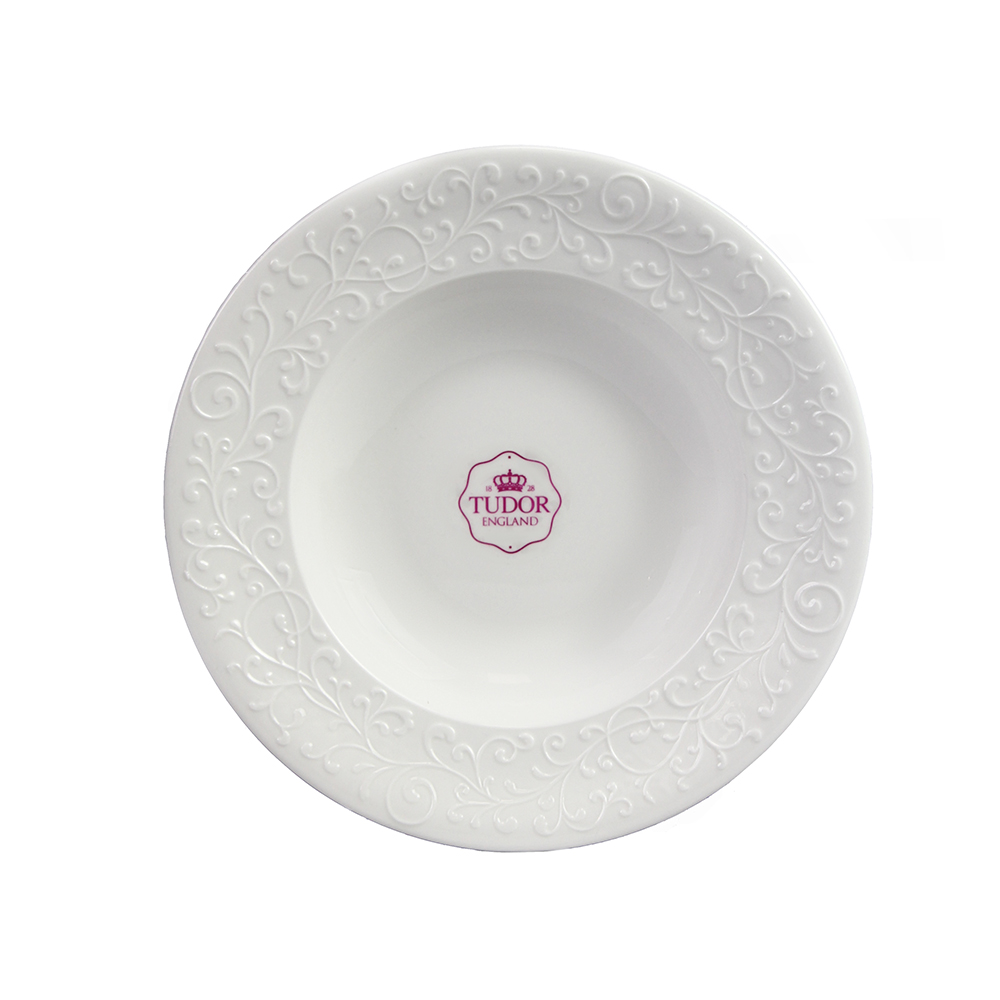 Обеденная тарелка от бренда Tudor England изготовлена из высококачественного фарфора, предназначена для тех, кто ценит элегантность и аристократичность в деталях. Великолепное сочетание классического дизайна и прочного материала делает эту тарелку идеальным выбором для особых случаев и повседневного использования.Высококачественный фарфор, который не только выглядит изысканно, но и обеспечивает долговечность и стойкость к повреждениям. Чистый белый цвет придает тарелке нежность и стиль. Рельефный рисунок в виде вензелей добавляет аристократический шарм и утонченность. Глазурованное покрытие обеспечивает долговечность и легкость в уходе за посудой.Плоская тарелка идеально подходит для подачи вторых блюд, закусок, десертов, фруктов, а также для подачи выпечки.