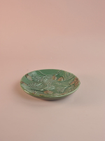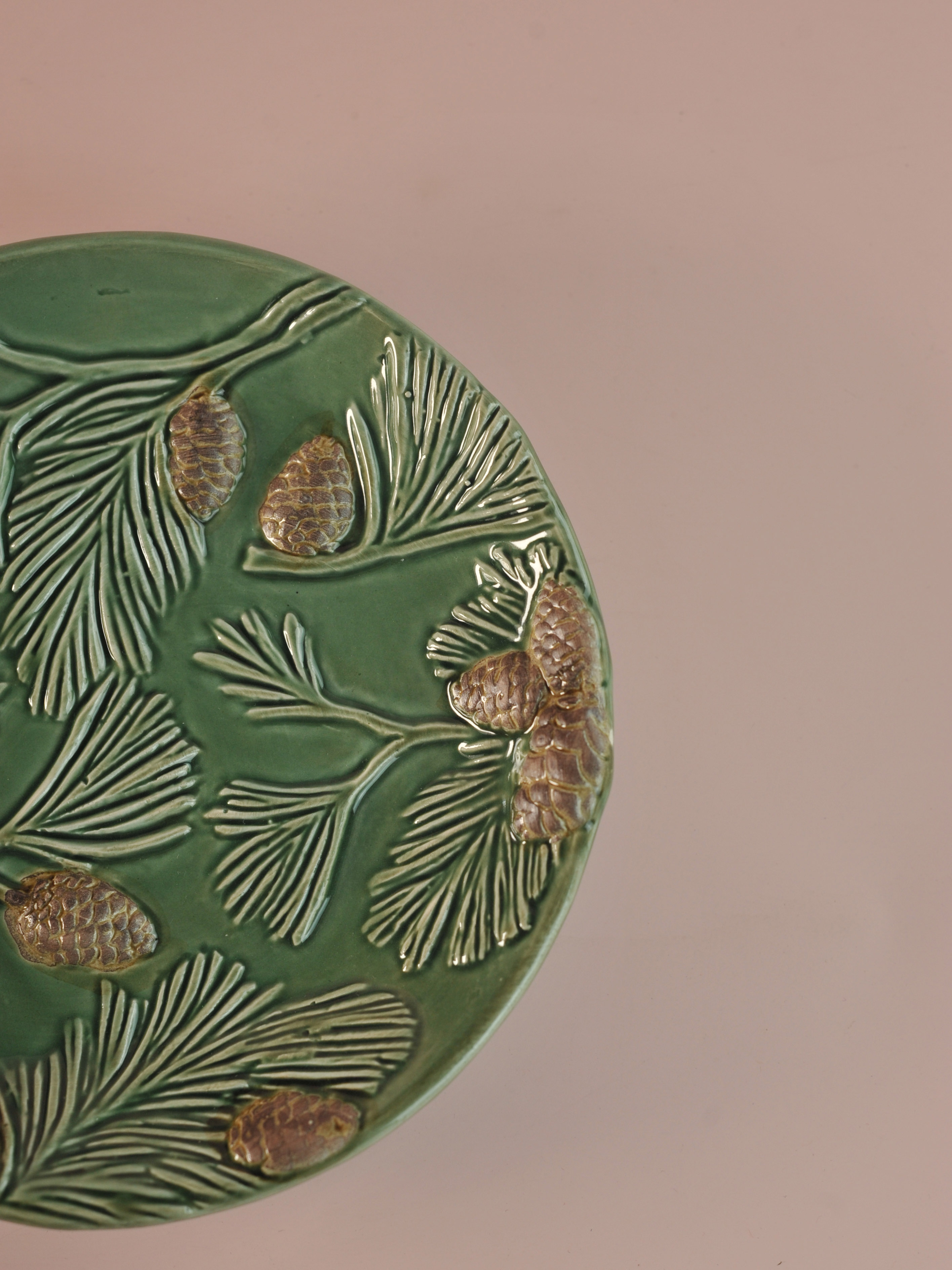 Наша посуда отличается насыщенными зелеными оттенками, которые ассоциируются с зимним лесом и свежестью природы. Объемные шишки и сосновые ветки, изящно оформленные на поверхности изделий, создают поистине волшебную атмосферу, способную перенести вас в сказочный лес. Эти элементы дизайна представлены с особым вниманием к деталям, что подчеркивает уникальность каждого изделия.