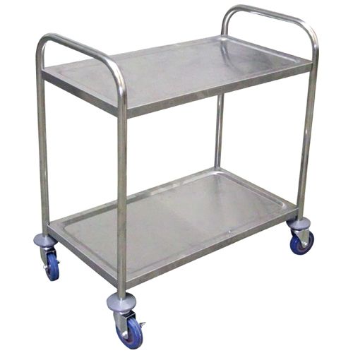 Тележка сервировочная двухуровневая — наиболее распространенный тип оборудования, на котором с одинаковым успехом можно перевозить все: от полотенец до готовых блюд.