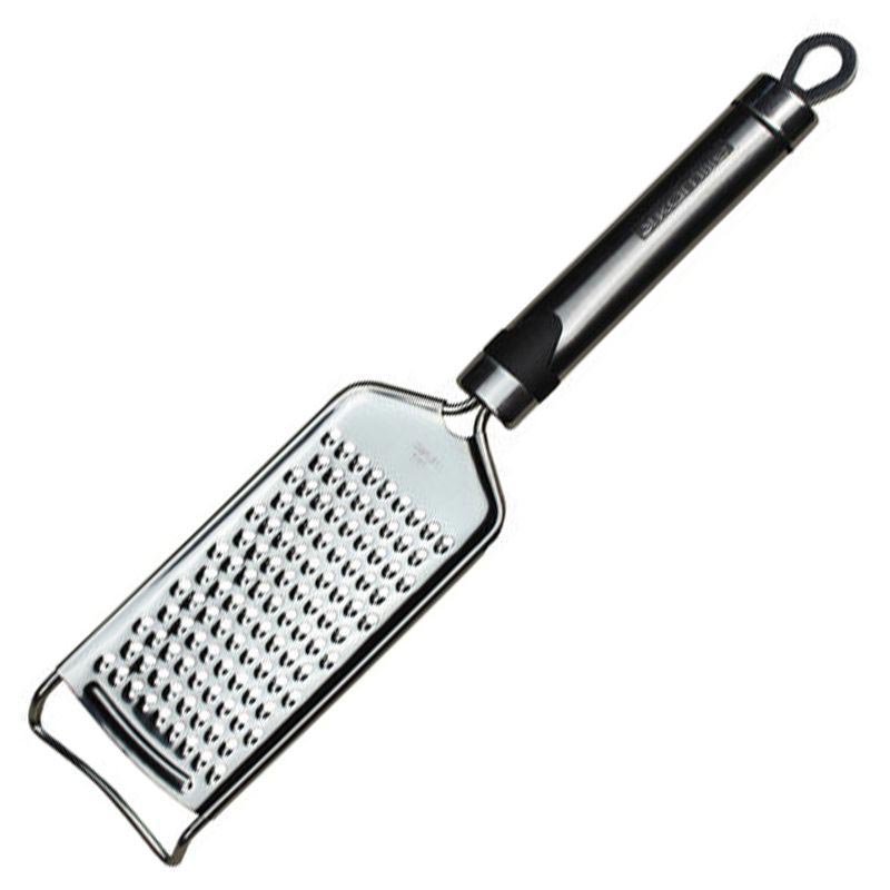 Изготовлена терка из нержавеющей стали, не окисляется и безопасно контактирует с продуктами.
