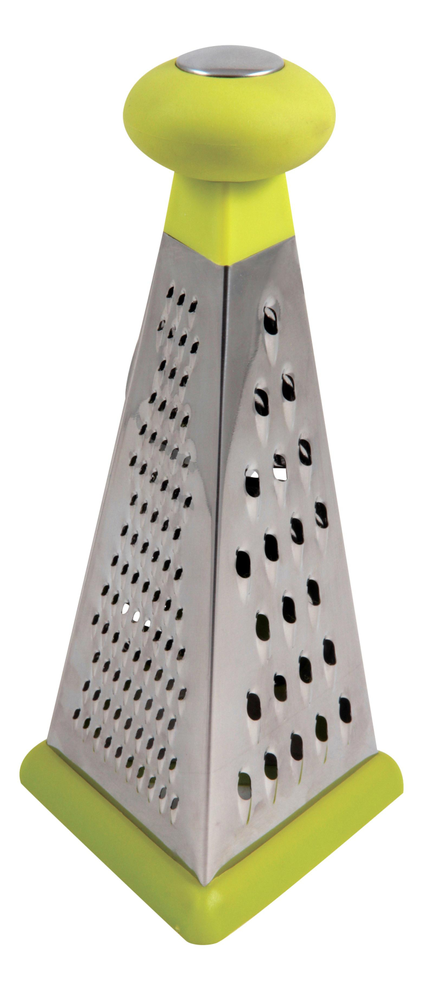 Терка из нержавеющей стали с тремя рабочими. Нескользящее прорезиненное основание надежно удерживает терку на рабочей поверхности. Можно мыть в посудомоечной машине. Шестигранная овощерезка имеет эргономичную ручку из пластика. Оптимальное решение для быстрой и легкой терки овощей.