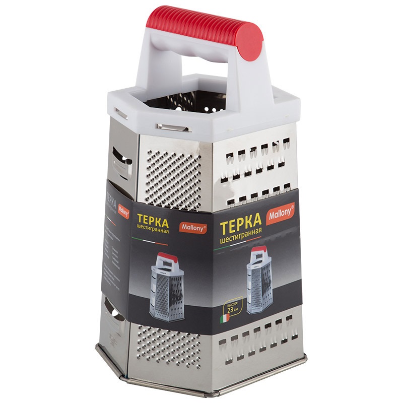 Шестигранная терка Mallony GR-001-9 965005 предназначена для измельчения пищевых продуктов. За счет эргономичной формы удобна в использовании. Легко моется, что экономит время и силы. Терка не ржавеет, благодаря чему прослужит долго.
