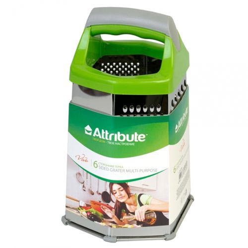 Терка Attribute "Viva Grey-Green" выполнена из качественной нержавеющей стали и пластика, имеет удобную ручку, а также силиконовые ножки, которые надежно удерживают инструмент на рабочей поверхности.