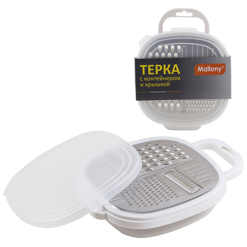 Терка с контейнером и крышкой Mallony GR-228W предназначена для измельчения и нарезки пищевых продуктов.