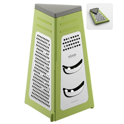 Высота 21 см. Верхняя крышка с противоскользящим покрытием "софт-тач". Силиконовые противоскользящие опоры. Ножи из высококачественной нержавеющей стали с толщиной стенок 0,4 мм. Легкая мойка и удобное хранение.