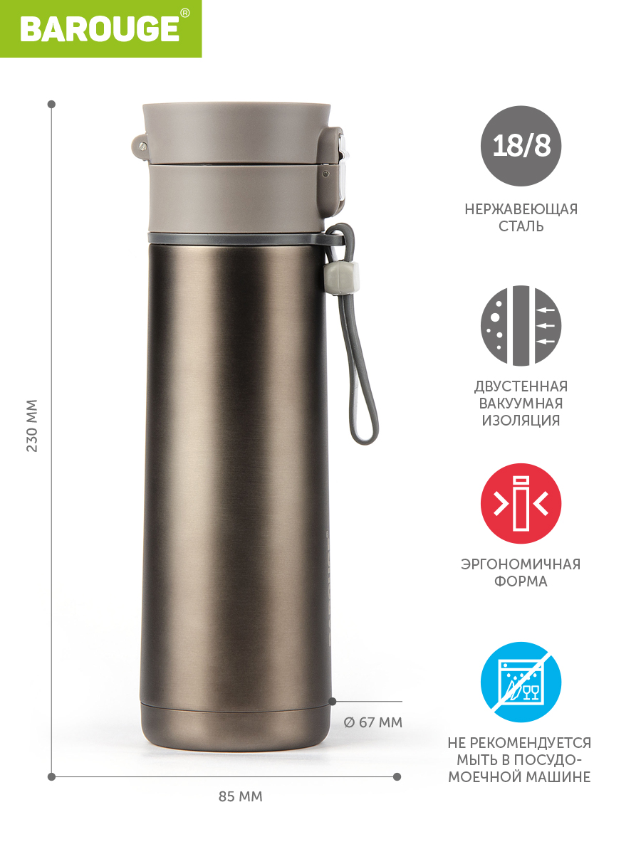 Термобутылка BAROUGE Travel Bottle, оснащена удобным ремешком для переноски.