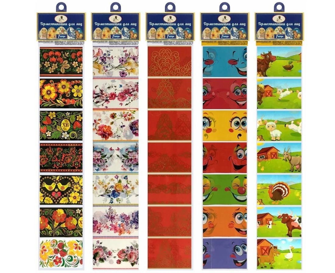Крашеные яйца - один из главных символов Светлого Христова Воскресения. Но кроме своего символического значения, крашеные яйца являются прекрасным пасхальным угощением на праздничном столе. Существует множество способов украшения пасхальных яиц-с помощью отвара луковой шелухи, вина, пищевых красителей, декупажа, фольги, сухоцветов и т. п. Термоэтикетка значительно облегчит процесс украшения пасхальных яиц и сэкономит ваше время. Достаточно разрезать плёнку на отдельные этикетки, надеть их на вареные яйца, опустить яйцо в этикетке в кипящую воду на 3-5 секунд. Красивые пасхальные яйца готовы! Изготовлено: полимерный материал (поливинилхлорид).