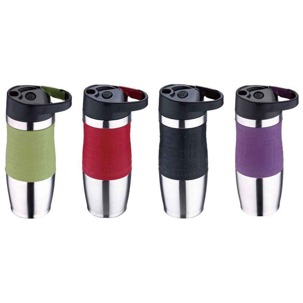 Крышка оснащена клапаном для питья и креплением для дополнительной фиксации. Основание имеет силиконовую вставку для предотвращения скольжения по поверхности. Оптимальный объем термокружки позволит взять с собой большую порцию горячего кофе или чая.