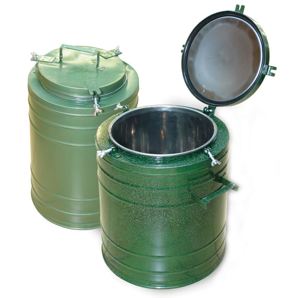 Наружная поверхность термоса окрашена атмосферостойкой краской. Крышка снабжена уплотнительной прокладкой и обеспечивает герметичность термоса в закрытом состоянии при помощи регулирующих откидных болтов.