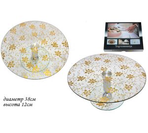 Тортовница вращающаяся на ножке "Золотой цветок" 38см