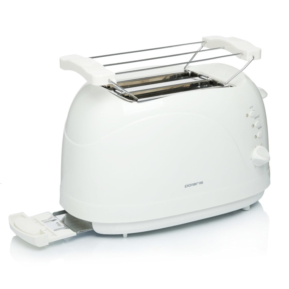 Тостер "Polaris" порадует Вас возможностью выбрать одну из нескольких степеней поджаривания ваших тостов - двух одновременно! Его корпус сконструирован таким образом, чтобы не нагреваться при работе - безопасность на кухне прежде всего. Потребляемая мощность - 750 Вт. Он умеет не только поджаривать ломтики хлеба, но и подогревать булочки на специальной решетке, и даже размораживать продукты.